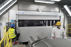 - 采用高密度聚氯乙烯涂層織物軟簾,實(shí)現(xiàn)了高速開閉,比傳統(tǒng)門速度高約20倍。